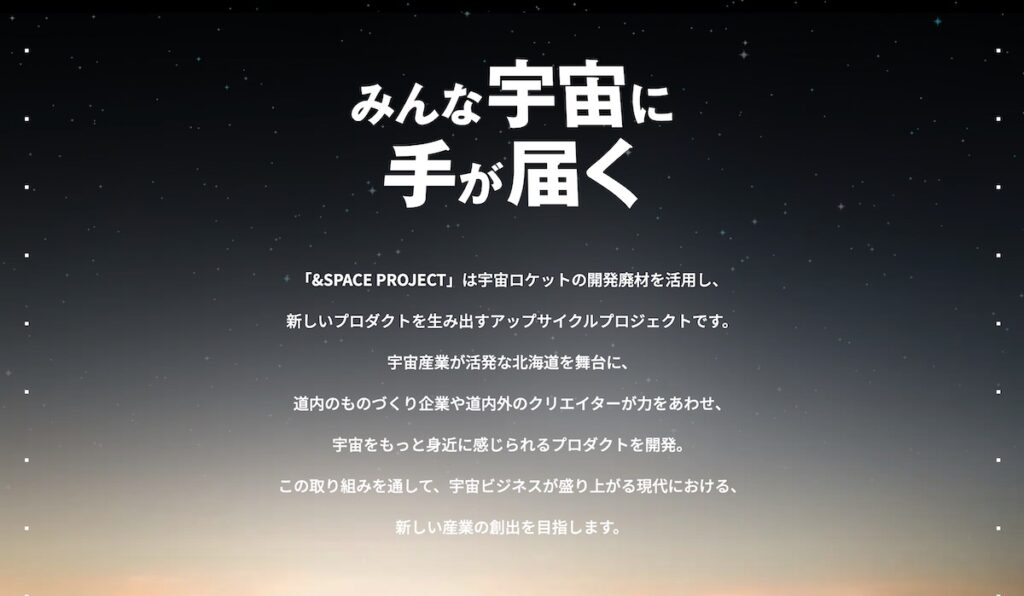 宇宙産業が活発な北海道を舞台に、道内のものづくり企業や道内外のクリエイターをつなぎ合わせ、宇宙ロケットの開発廃材を活用した新しいプロダクトを生み出すアップサイクルプロジェクト。宇宙をもっと身近に感じられるプロダクトとして宇宙家具シリーズを開発。宇宙ビジネスが盛り上がる現代における、新しい産業の創出をつくり道東エリアの活性化を目指しています。